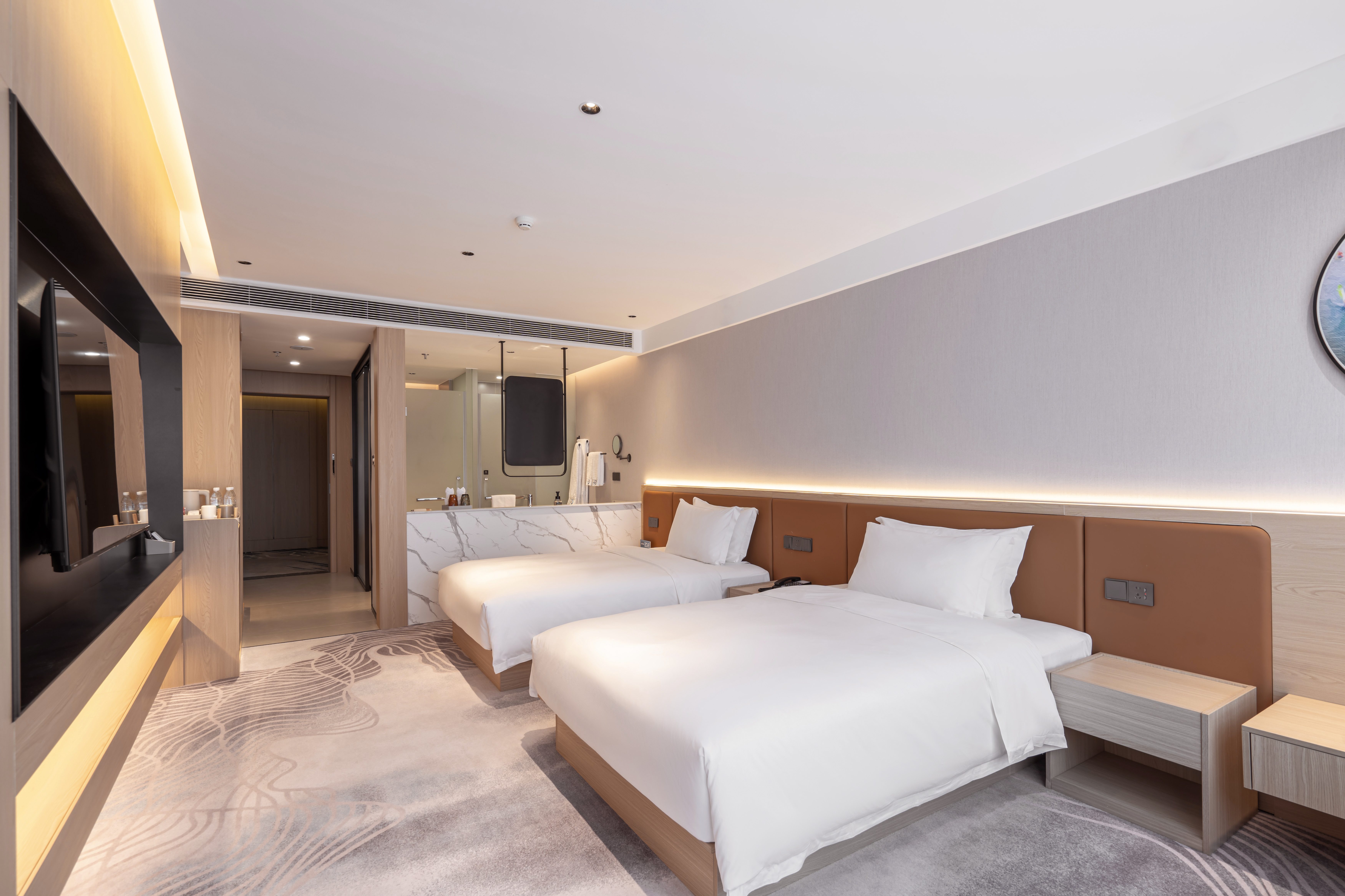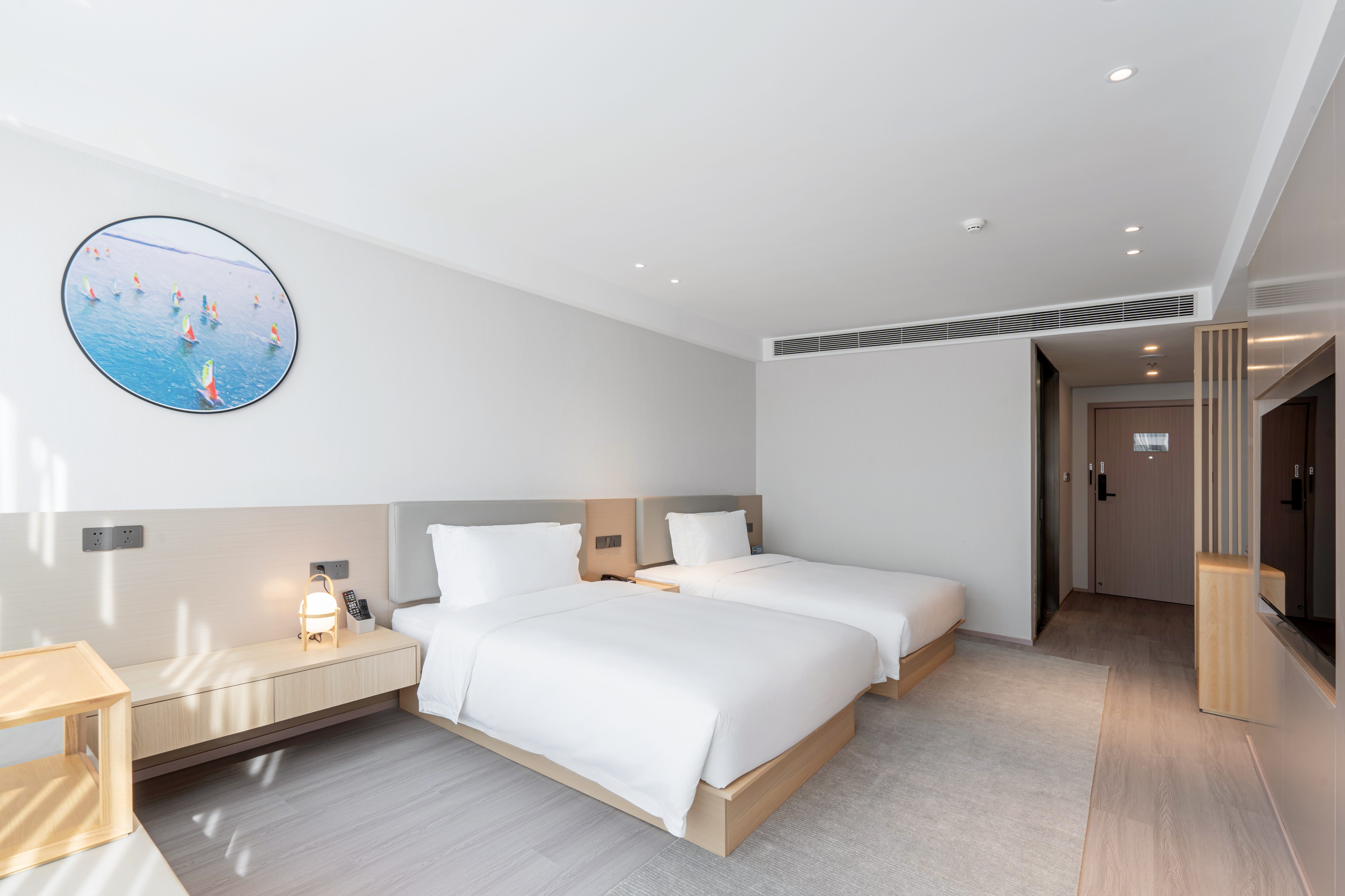 以“运动赋能度假,奢适对话自然”为核心理念,匠心打造长三角首屈一指的滨海度假运动综合体。酒店主体以破浪游艇为灵感,用双翼环抱之势诠释“更快、更高、更强”的奥林匹克精神;辅楼专设综合运动中心,内置赛事级标准的游泳池、室内篮球馆及室外足球场,构建“静享度假”与“动驭激情”的无界体验。